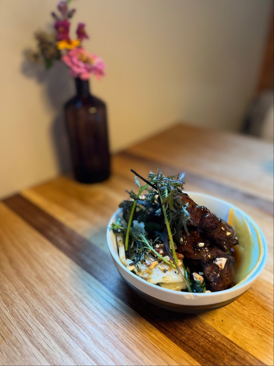 From the moment you step inside, the warm and stylish décor sets the tone for a relaxed yet refined dining experience. The dim lighting and cozy booths make it the perfect spot for an intimate dinner, while the lively energy from the open bar area keeps things vibrant. Bloom’s atmosphere strikes the perfect balance between upscale and approachable, making it a go-to choice for both locals and visitors alike.